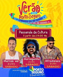 O Projeto Verão, maior iniciativa de entretenimento, em toda a história de Porto Seguro e que desde o início de janeiro, vem movimentando atrações e shows na Passarela Cultural, na broduei e em longínquos rincões do município, traz hoje, (21/01), na mais badalada e encantada Passarela do Brasil, o carismático músico e cantor Marcos Val.