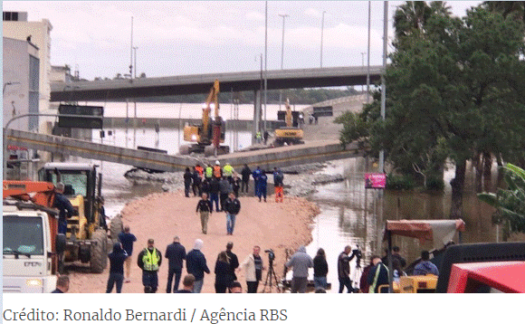 De acordo com o repórter Ian Tâmbara, foi derrubada a passarela da Rua Conceição, em frente à Rodoviária de Porto Alegre. Segundo o prefeito Sebastião Melo medida se faz necessária para viabilizar o corredor humanitário que está sendo construído a partir da Avenida Castelo Branco.