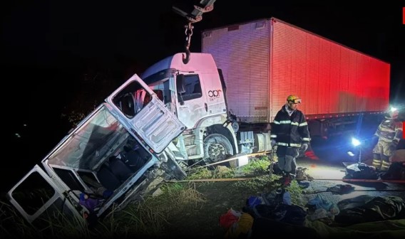 De acordo com os agentes, a van ficou em local de difícil acesso com a batida e várias vítimas ficaram presas às ferragens. Entre os ocupantes da van, nove morreram no local — oito adultos e uma criança —, e oito ficaram feridos. Na carreta, o motorista e o passageiro eram os únicos ocupantes e sofreram ferimentos leves.