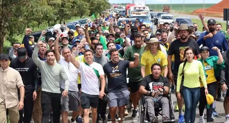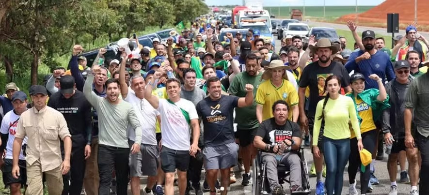 Caminhada liderada por Nikolas Ferreira protesta contra prisão de Bolsonaro e mobiliza apoiadores rumo a Brasília