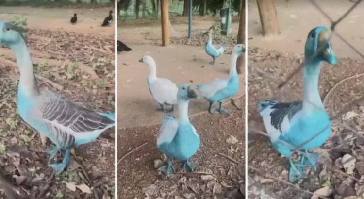 Carga de corante vaza de caminhão e patos ficam azuis em lago no interior de SP