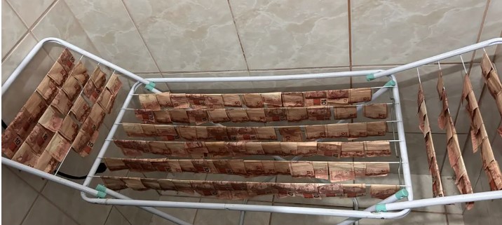 Parece piada pronta — mas não é. Durante uma operação contra a lavagem de dinheiro do tráfico de drogas, a Polícia Civil de Santa Catarina encontrou, literalmente, dinheiro lavado. Cerca de R$ 400 mil em espécie foram apreendidos, e parte das notas, cuidadosamente estendidas em um varal de chão, estava “secando ao sol” no melhor estilo “modo lavanderia express”.