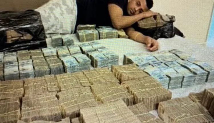 A Polícia Federal obteve um registro de TH Joias, deputado estadual do Rio de Janeiro preso por suposto envolvimento com o CV (Comando Vermelho), deitado em uma cama ao lado de dezenas de malotes de notas de real.