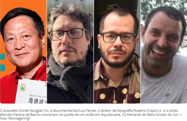 O arquiteto chinês Kongjian Yu, de 62 anos, conhecido por criar o conceito de “cidades-esponja”, o documentarista Luiz Fernando Feres da Cunha Ferraz, o diretor de fotografia Rubens Crispim Júnior e o piloto Marcelo Pereira de Barros morreram na 3ª feira (23.set.2025) à noite na queda de uma aeronave Cessna de pequeno porte na zona rural de Aquidauana (MS), no Pantanal. O acidente aconteceu por volta das 18h30, próximo à Fazenda Barra Mansa, destino turístico frequentado por visitantes nacionais e estrangeiros. Foi confirmado por autoridades e pela Olé Produções, da qual Ferraz era sócio.