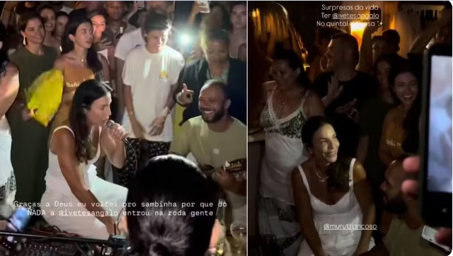 A cantora Ivete Sangalo participou de uma roda de samba em um bar e restaurante de Trancoso, distrito turístico de Porto Seguro, no extremo sul da Bahia. O momento foi compartilhado por meio de um vídeo em uma rede social, na quinta-feira (8/01).