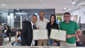 A sessão solene abriu oficialmente os trabalhos do dia e foi dedicada à entrega de títulos de Cidadão Honorário de Porto Seguro a dois empresários que se destacam no setor de alimentos e na contribuição ao desenvolvimento econômico local: Roquemar Arpini, conhecido popularmente como Roque do Supermercado Econômico, e Ronaldo Ramos dos Santos. As homenagens reconheceram o vínculo construído pelos empresários com a cidade e sua relevância social e econômica.