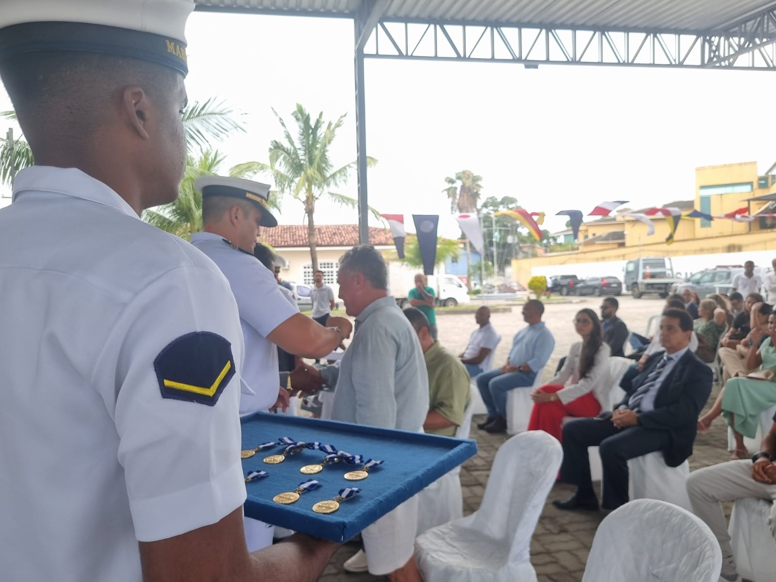 A solenidade foi conduzida pelo Delegado da Capitania dos Portos de Porto Seguro, Capitão-Tenente Gabriel Onofre, que deu as boas-vindas aos homenageados, familiares e convidados. Em seu pronunciamento, destacou a importância do momento para a instituição.