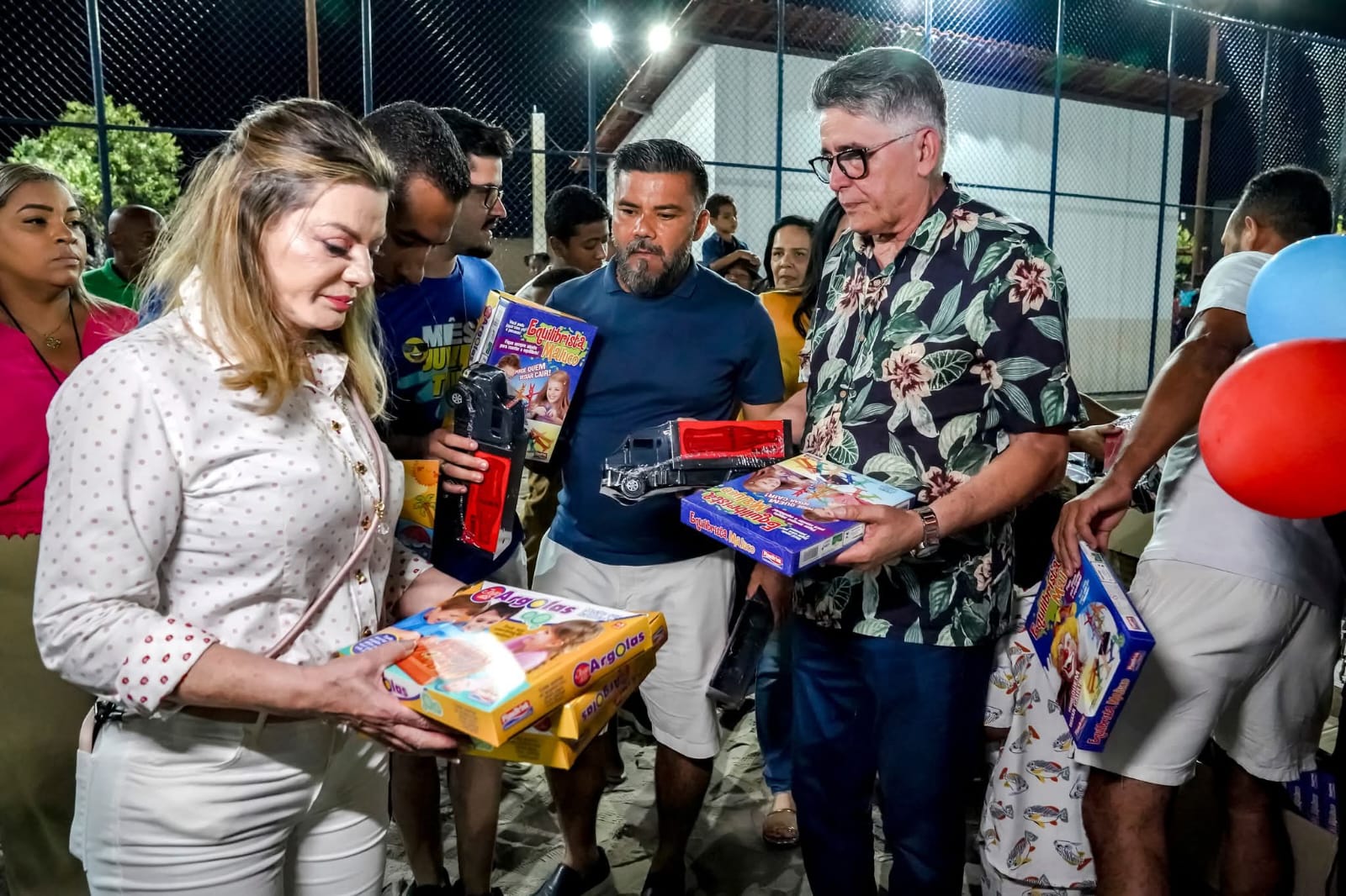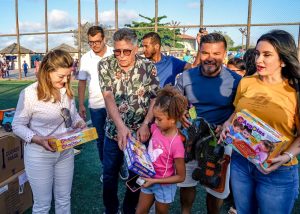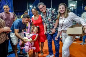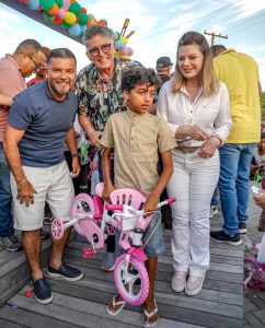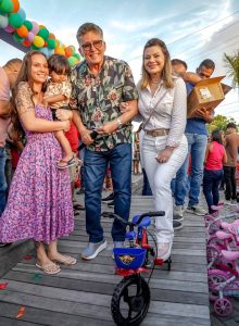 O evento contou com a presença do prefeito Jânio Natal, da 1ª dama e secretária da Mulher, Cristiane Chiachio, do vice-prefeito Paulinho Toa Toa, de secretários municipais e vereadores, que acompanharam de perto a distribuição de brinquedos e o entusiasmo das crianças. Entre os presentes mais desejados estavam bicicletas, patinetes, bolas e bonecas, entregues com carinho pela equipe da administração municipal.