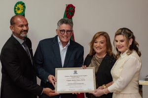 A primeira-dama e secretária Municipal de Políticas para Mulheres, Cristiane Chiachio, também ressaltou a importância do momento: “É uma honra acompanhar a entrega da maior comenda do município a mulheres que fazem a diferença, assim como tantas outras que já receberam esse reconhecimento e que atuam em diversas áreas. Que Jesus continue nos abençoando e nos dando força para seguir firmes nessa missão de proteger e transformar vidas.”