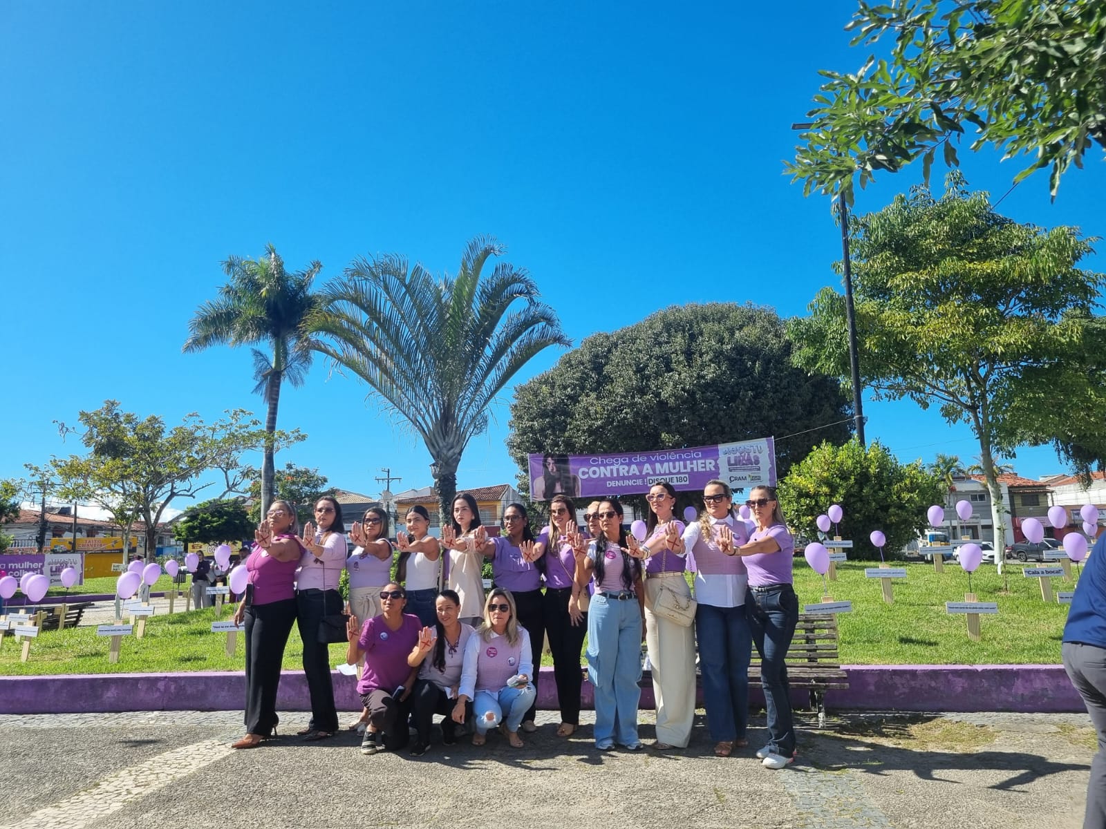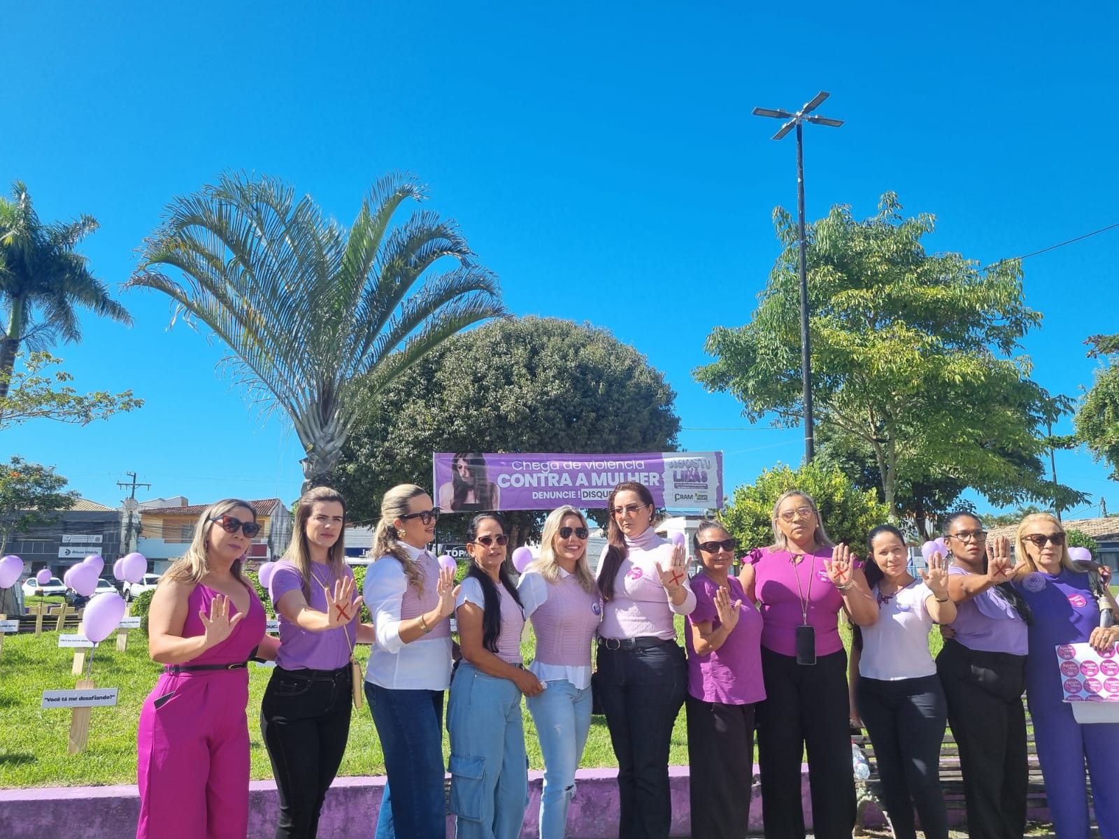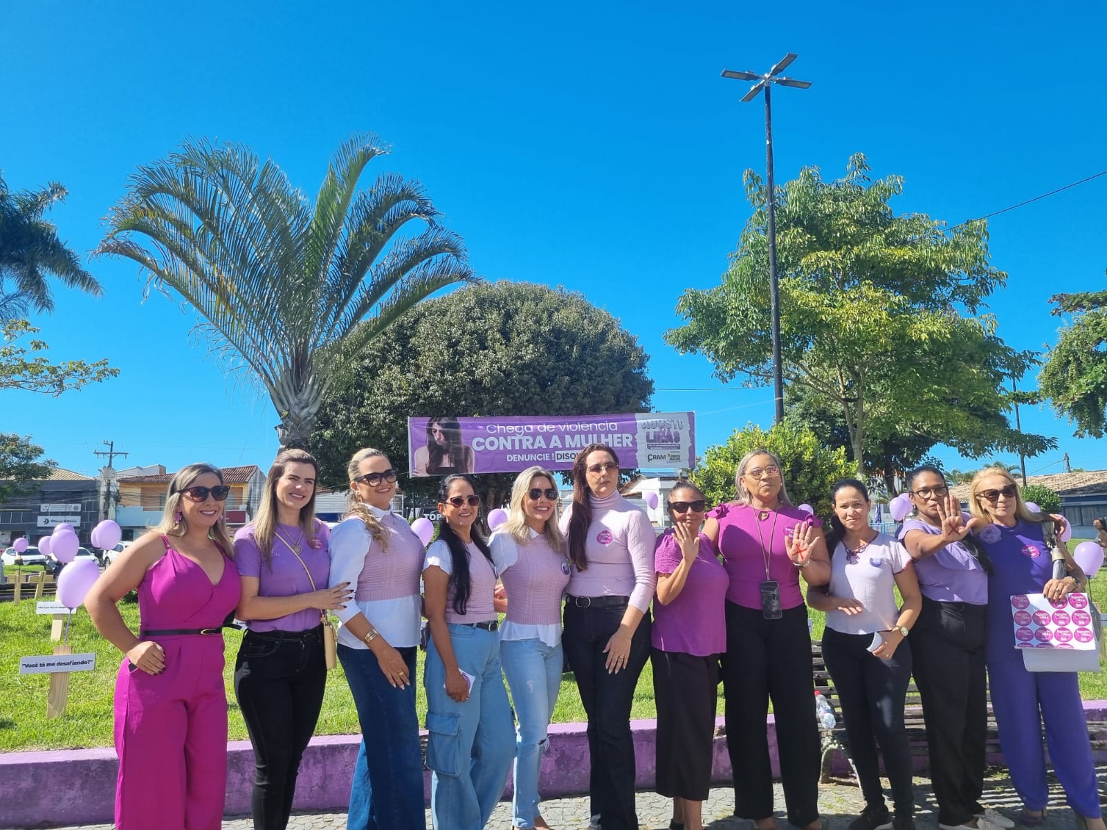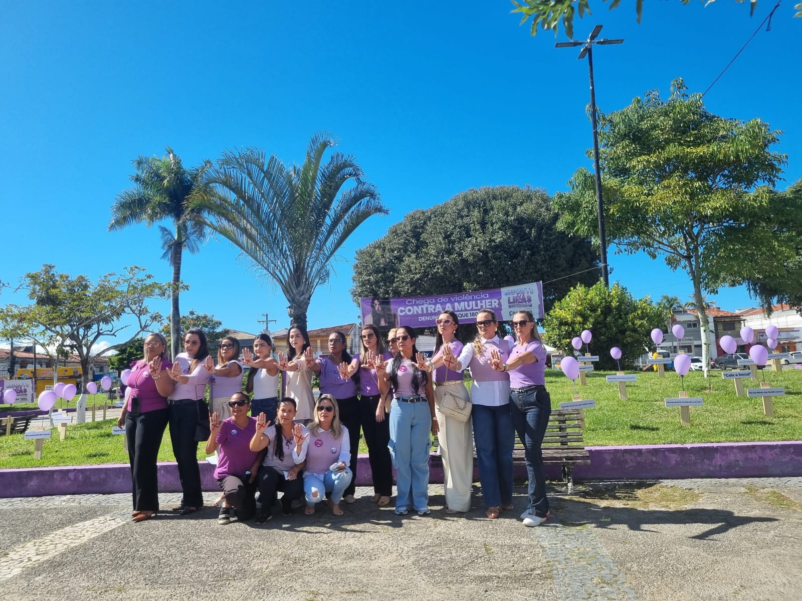 Na manhã desta quinta-feira (7/08), a Praça Antônio Carlos Magalhães (Praça ACM), no centro de Porto Seguro, foi palco de uma mobilização emocionante e necessária: o município realizou um grande ato público em repúdio à violência contra as mulheres. O evento reuniu centenas de pessoas e contou com a presença de autoridades municipais, estaduais e da sociedade civil, com destaque para o prefeito Jânio Natal, o vice-prefeito Paulinho Toa Toa e a primeira-dama Cristiane Chiachio, que foi também a anfitriã da cerimônia.