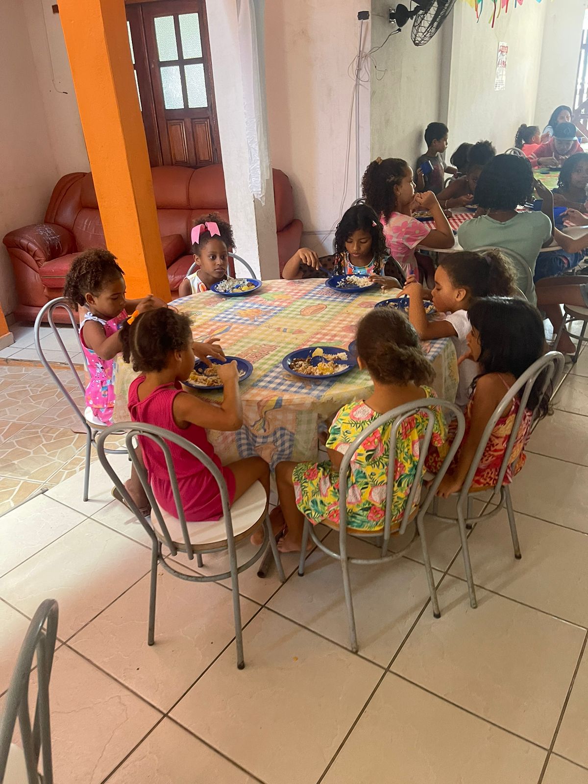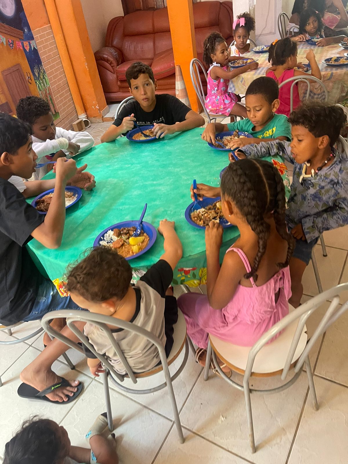 A começar pelo prédio, onde funciona o Ceame, com 12 suítes – refrigeradas e com chuveiro aquecido, cozinha, refeitório, consultório odontológico, ambulatório e área de recreação com piscina e pula-pula. Outro diferencial é a equipe de 35 profissionais, que se desdobram para oferecer um atendimento diferenciado. São cuidadores, recreadores, pedagogos, odontólogas, vigilantes, além das equipes da cozinha e limpeza. Lá as crianças recebem seis refeições diárias – café da manhã, lanche, almoço, lanche da tarde, ceia e uma fruta antes de dormir.
