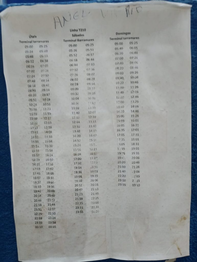 T210: 05h00, 05h40, 06h20, 07h00… até 23h35