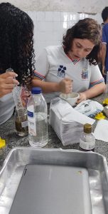 O CIEPS nas suas aulas e oficinas de química com a professora Leinah Silva Souza e os estudantes: Guilherme Dias, Felipe Fragas, Laila Almeida, Daniel Carlos Rocha, Jailson Souza e Rayssa Vilas (estudantes que irão representar os trabalhos realizados em conjunto com outros colegas), produziram três projetos que foram selecionados para a segunda etapa estadual que será realizada em Lauro de Freitas entre os dias 08 e 10 de novembro. O primeiro projeto é o de Hidratante artesanal com alfazema azul; o segundo, Biofilme com extrato de brócolis e o terceiro, Composteira doméstica. O hidratante corporal artesanal foi elaborado a partir da produção do extrato glicólico e óleo de infusão de alfazema azul em conjunto com extrato glicólico de “aloe vera” pelos estudantes com o intuito de desenvolverem um produto passível de empreendimento. Quanto ao biofilme, os estudantes elaboraram um revestimento com materiais de baixo custo para avaliarem o aumento de tempo de prateleira de frutas. Por fim, a elaboração da Composteira doméstica foi feita com a finalidade de reaproveitar alguns resíduos orgânicos e auxiliar na Horta da escola para melhorar a nutrição do solo, e, consequentemente, se obter produtos com mais nutrientes. Estes três projetos abrilhantarão a FECIBA que será um momento de engajamento das escolas a partir de uma perspectiva de incentivo aos nossos professores e estudantes que desenvolvem o fazer pedagógico científico de maneira reflexiva, crítica e criativa.