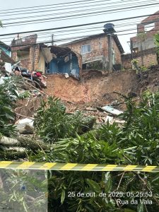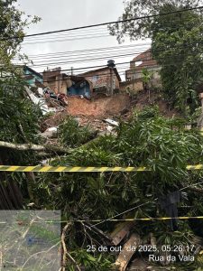As fortes e persistentes chuvas que atingem Porto Seguro desde o último domingo (19/10) provocaram, na madrugada deste sábado (25), duas ocorrências graves de deslizamento de terra — uma no bairro Taperapuan, na sede do município, e outra no distrito de Arraial d’Ajuda, resultando em uma vítima fatal e dezenas de famílias atingidas.