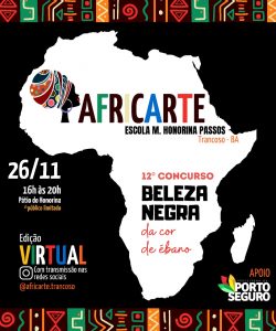 No intuito de valorizar o empoderamento da beleza negra e a cultura afro, o Projeto Africarte realiza o 12º Concurso Beleza Negra no dia 26 de novembro, às 16 horas, no pátio da Escola Honorina Passos, em Trancoso.