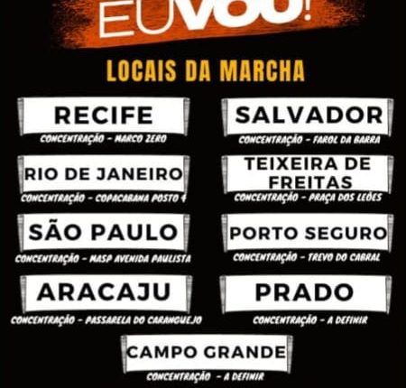 Em Porto Seguro, o encontro será no Trevo do Cabral, com concentração às 15h e encerramento às 19h.