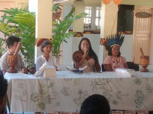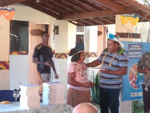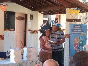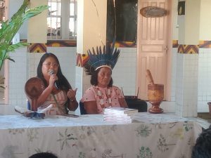 O evento realizado em Coroa Vermelha – Santa Cruz Cabrália – na Escola Indígena Pataxó, teve início com rezos e o cantos – ritual do Awê. Na sequência, foi formalizada a mesa com professores da UFSB e da Escola Pataxó, além é claro, da autora do livro, todos visivelmente emocionados