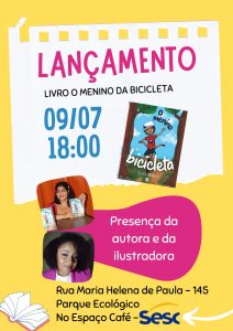 Neste sábado, dia 09 de julho, haverá o lançamento do livro “O Menino da Bicicleta”, escrito por Jéssica Maurício e ilustrado por Dandhara Jacob, ambas moradoras de Porto Seguro-BA.