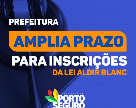 A prefeitura de Porto Seguro, através da Secretaria de Educação, Cultura e Patrimônio, informou em suas redes sociais, neste final de semana, que o prazo de inscrições da Lei Aldir Blanc para concorrer ao Edital de Premiação 01/2021 publicado no Diário Oficial do Município em 30/10/2021, foi ampliado, de 26 de novembro a 06 de dezembro.