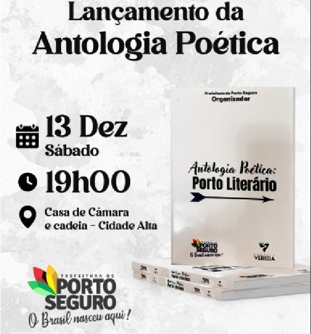 A Prefeitura de Porto Seguro prepara o lançamento da Antologia Poética: Porto Literário, obra inédita que reúne poemas de 14 escritores moradores do município, marcado para 13 de dezembro, às 19h, na Casa de Câmara e Cadeia, na Cidade Histórica. Fruto de Edital Público, a coletânea apresenta produções de temática livre e inéditas.