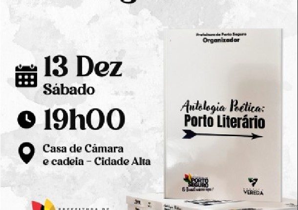 A Prefeitura de Porto Seguro prepara o lançamento da Antologia Poética: Porto Literário, obra inédita que reúne poemas de 14 escritores moradores do município, marcado para 13 de dezembro, às 19h, na Casa de Câmara e Cadeia, na Cidade Histórica. Fruto de Edital Público, a coletânea apresenta produções de temática livre e inéditas.