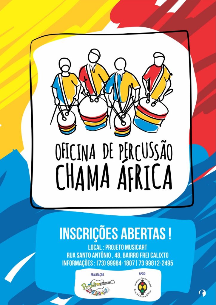 O Instituto Sociocultural Brasil Chama África, em parceria com o projeto Musicart abriu as inscrições para oficinas de percussão para jovens moradores do Complexo Frei Calixto.