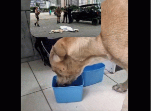 A ONG divulgou vídeos do cão se alimentando e afirmou que ele é muito carinhoso. “Ele é forte e a gente precisa de um lar para ele não sofrer a dor do luto e ter uma casa”, diz uma das responsáveis pela Viva Bicho.