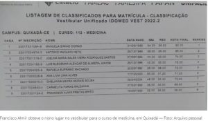 Morador de Fortaleza, Almir agora terá de se mudar para a cidade de Quixadá, a 167 km da capital cearense. Para ele, tudo se encaixou como deveria, pois vai poder continuar trabalhando como enfermeiro mesmo na cidade onde vai estudar pelos próximos seis anos.