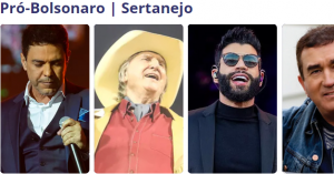 A lista não inclui cantores que já defenderam um dos candidatos em eleições anteriores, mas reconsideram a posição. É o caso do ex-BBB Rodolffo, da dupla com Israel, que escreveu no Instagram que apoiou Bolsonaro em 2018, mas não necessariamente vai manter este apoio.