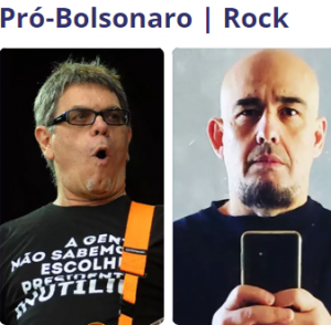 O quadro abaixo, feito a partir de declarações recentes destes músicos em redes sociais e na imprensa, mostra alguns defensores mais conhecidos de Lula e Bolsonaro em cada gênero: