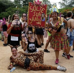 “Nós já estávamos com essa fantasia no radar e ficamos sabendo desse grupo de mulheres que desfilariam como Janjas. Resolvemos ir no mesmo bloco e ainda encontramos o ‘Stuckinha’ por lá”, diz Michele à coluna, aos risos.