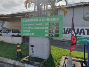 Em Porto Seguro, os preços atingem R$ 6,85 o litro da gasolina comum. Apenas em um posto, o preço cai para R$ 6,65, em caso de pagamento à vista.