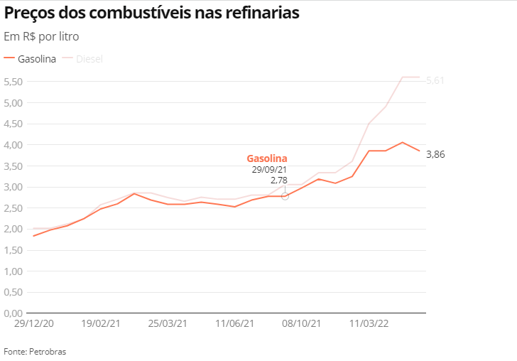 Segundo a petroleira, a redução “acompanha a evolução dos preços internacionais de referência, que se estabilizaram em patamar inferior para a gasolina, e é coerente com a prática de preços da Petrobras, que busca o equilíbrio dos seus preços com o mercado global, mas sem o repasse para os preços internos da volatilidade conjuntural das cotações internacionais e da taxa de câmbio”.