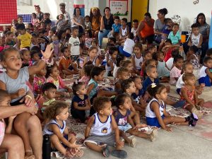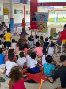 A educação nutricional está sendo abordada de forma lúdica nas escolas do Município de Porto Seguro, entre os dias 13 e 31/03. Com uma programação voltada para o público da educação infantil, a conscientização da importância do consumo de alimentos saudáveis ocorre com apresentações de teatro e música, que são conduzidas pela contadora e pedagoga Nádia Barbuglio.