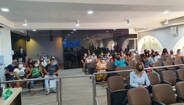 A sessão da Câmara de Vereadores de Porto Seguro desta quinta-feira, 24 de fevereiro, foi marcada por discursos de apoio ao professorado, que ocupou a Casa Legislativa (os 30% possíveis, seguindo os protocolos de segurança devido à pandemia do Covid-19). Do lado de fora, ainda ficou boa parte dos professores, membros do sindicato da APLB.