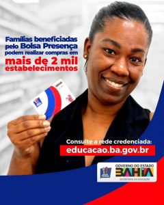 As famílias dos estudantes da rede estadual de ensino, que estão aptas a receber o crédito do programa Bolsa Presença, podem realizar compras no novo cartão da operadora Le Card, em mais de 2 mil estabelecimentos na Bahia. Para conferir a lista de estabelecimentos credenciados, basta acessar a central de auto-atendimento do cartão pelo link (https://cartao.algorix.com/Lecard/Atend/LoginGift.aspx).