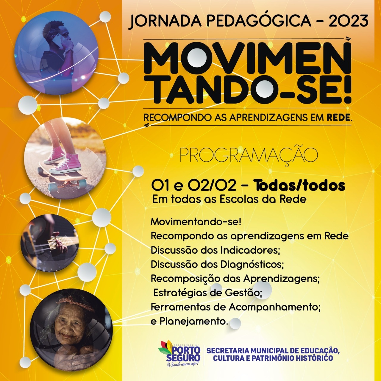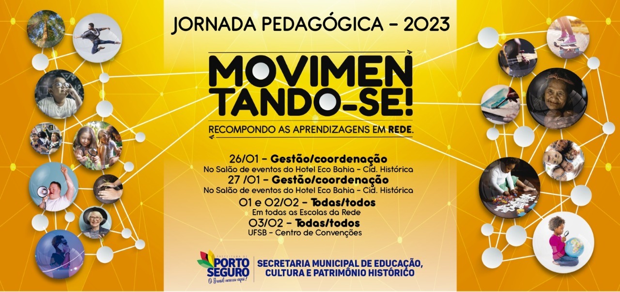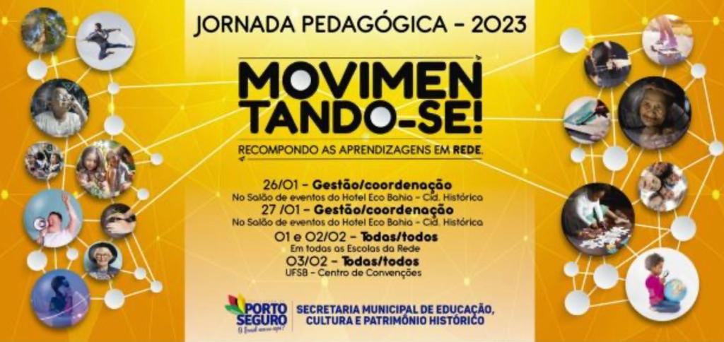A Secretaria Municipal de Educação (SEDUC) promove, de 26/01 a 03/02, a Jornada Pedagógica – Edição 2023 – com o tema: “Movimentando-se! Recompondo as aprendizagens em rede”. O evento envolve a participação de docentes, gestores escolares e coordenares pedagógicos