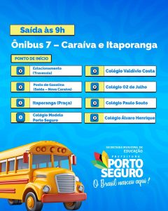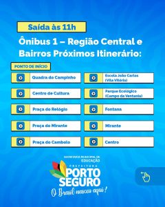 Ao todo, dez escolas de Porto Seguro serão utilizadas como locais de aplicação do exame, recebendo estudantes de diversas regiões, tanto da sede quanto dos distritos. Para garantir que o maior número possível de candidatos tenha acesso ao transporte, a Prefeitura organizou rotas especiais com os ônibus escolares, que poderão ser consultadas na página oficial do município.