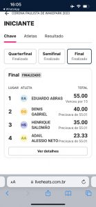 Duda liderou a competição em todas as etapas e acabou sagrando-se campeão da modalidade, com uma performance impressionante.