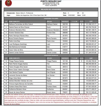 A escalação definida mantém a base que vem atuando nas últimas rodadas, apostando na consistência do sistema defensivo e na velocidade do setor ofensivo como principais armas. O ambiente é de união e confiança, com o elenco ciente do desafio, mas determinado a representar bem as cores do Porto em mais um compromisso decisivo.