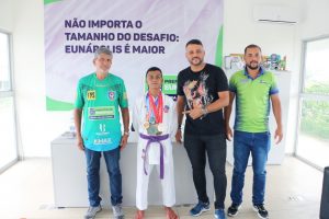 Com o apoio da Prefeitura de Eunápolis – por meio da Secretaria de Esporte, Juventude, Cultura e Lazer – diversos atletas têm conquistado importantes resultados a nível nacional, a exemplo do karateca Felipe Costa de Aguiar, de 12 anos, que reforçou sua coleção de medalhas nos campeonatos Brasileiro Estudantil e Brasileiro, neste mês, quando conquistou prata e bronze nas categorias sub 14. O atleta finaliza o ano com o total de seis medalhas de ouro, uma de prata e três de bronze.
