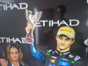 Norris terminou o Grande Prêmio de Abu Dhabi na 3ª posição, resultado suficiente para garantir o título com 423 pontos, apenas dois a mais que o holandês Max Verstappen, vice-campeão com 421. A vitória da prova ficou justamente com Verstappen, seguido pelo australiano Oscar Piastri, companheiro de Norris na McLaren.
