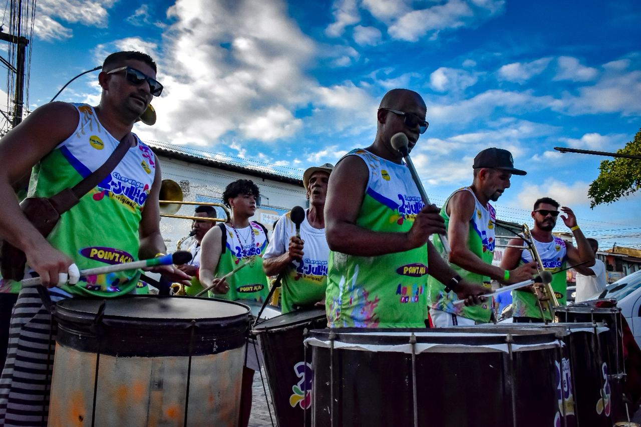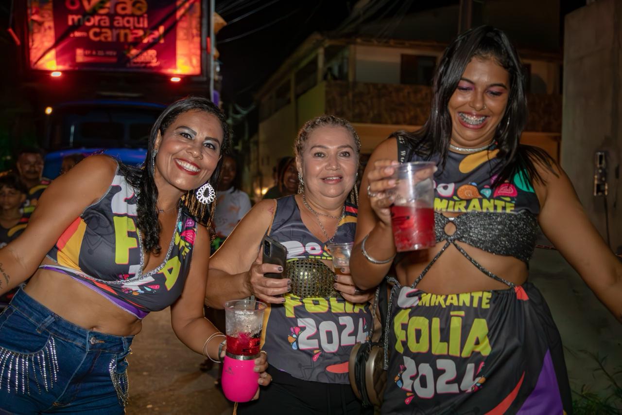 O cortejo das baianas foi acompanhado pela Charanga 2 de Julho, uma banda que toca marchinhas e sambas de carnaval. Os foliões se divertiram ao som da música e se refrescaram com a água do carro-pipa, que simulava uma chuva. O trio elétrico com Saan Wagner e Bandalana também animou a galera, com hits do axé e do pop.