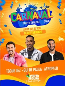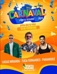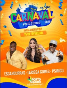 Com o tema “Avisa que eu vou”, o Carnaval 2026 não é apenas um convite — é um chamado irresistível para moradores e turistas viverem dias de pura alegria. Porto Seguro está pronta, como sempre esteve, para receber o Brasil e o mundo de braços abertos, com música, cultura, história e muita festa.