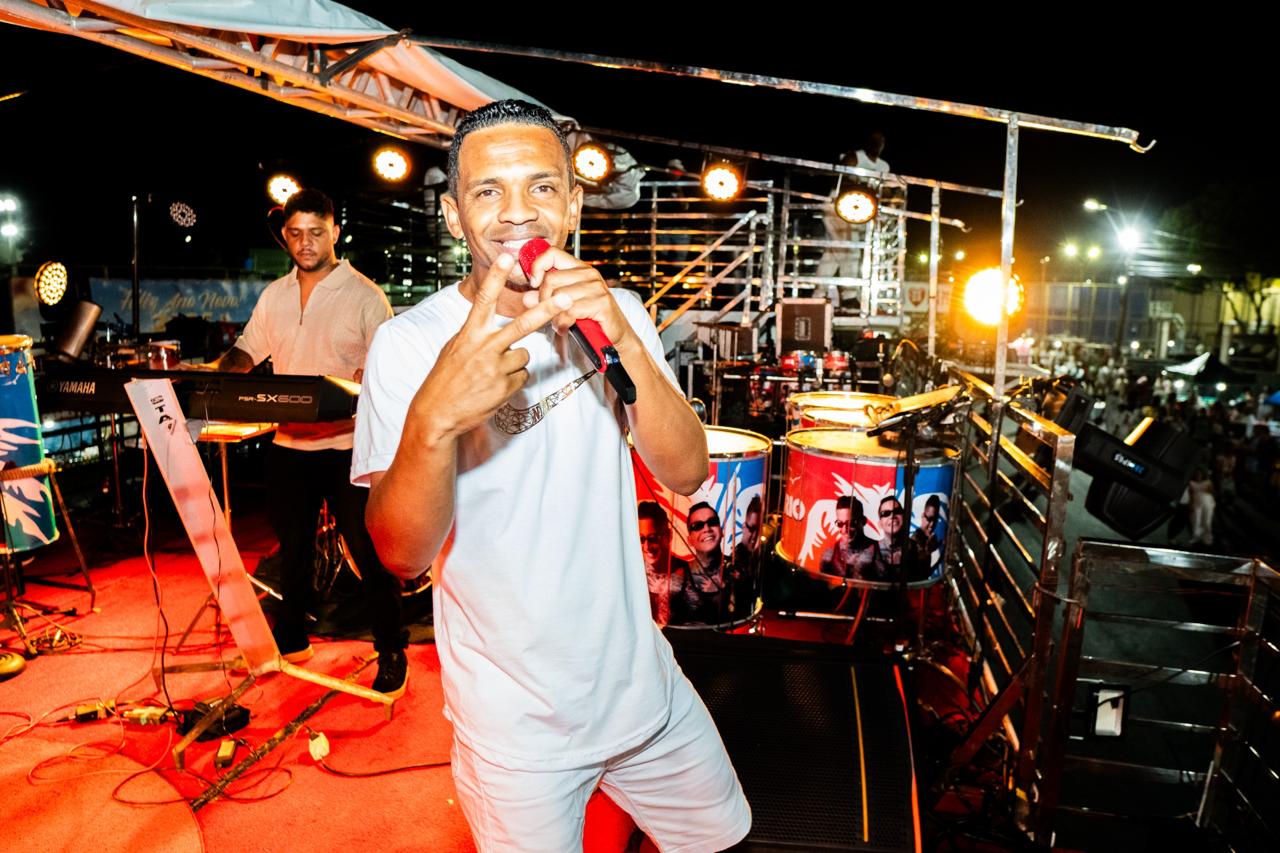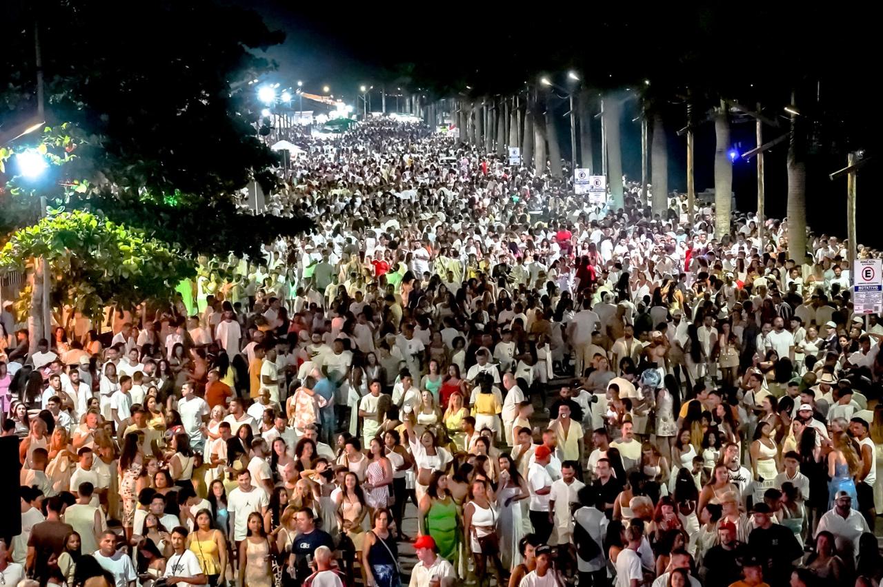 Principal atração da noite, a banda Chiclete com Banana conduziu a virada com um show intenso e participativo. Clássicos do repertório se sucederam sem pausa, acompanhados em coro pelo público, com percussão marcante e metais dando o tom da festa. A contagem regressiva foi seguida por uma intensa queima de fogos que iluminou o céu e o mar, oficializando a chegada de 2026. Na sequência, Lukas Miranda manteve o público em clima de animação.