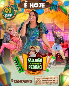 O bairro do Centauro, em Eunápolis, na Bahia, vivenciará uma segunda-feira repleta de alegria e animação no tradicional Encontro de São João com Pedrão. O destaque desta noite será a presença da estrela musical Xanddy Harmonia, que encanta o público com suas apresentações eletrizantes.