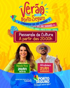 Mais um encontro marcado entre estrelas do axé-music da Bahia e público de todos os cantos do Brasil; as Bandas Afrodisíaco e Babado Novo se apresentam na Passarela da Cultura de Porto Seguro, em shows vibrantes que, certamente, deixarão saudades.