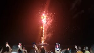 .À meia-noite, o céu se iluminou com fogos de artifício em várias tonalidades, presenteando o público com um visual deslumbrante que simbolizava a esperança e a alegria que a passagem de ano traz. Essa fusão de luzes coloridas foi o pontapé inicial para uma confraternização mágica entre pessoas de diferentes origens, todas unidas por um sentimento de inspiração e afeto coletivo. Os presentes compartilhavam votos de paz, saúde e esperança para o ano que se inicia.