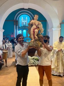 A solenidade na igreja matriz do quadrado, presidida pelo seu administrador paroquial: Frei Marconi, emocionou a todos os presentes que aguardavam ansiosos pela chegada do padroeiro, restaurado por Cláudio Lemos.