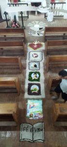 “Os tapetes integram o trajeto da procissão com o Santíssimo Sacramento, que para os católicos é a presença de Jesus no Pão Eucarístico”.